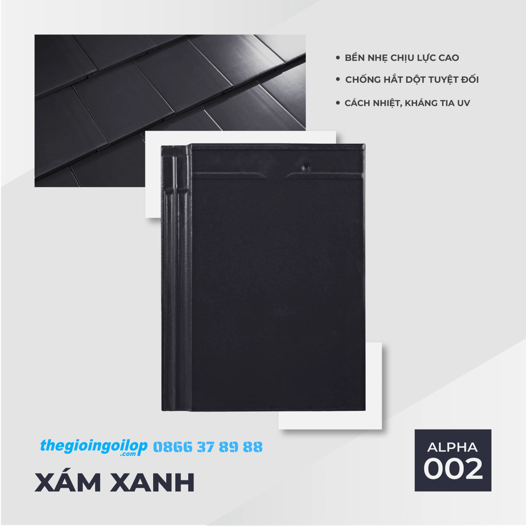 Ngói phẳng tráng men Alpha Đồng Tâm là dòng ngói cao cấp, được sản xuất trên dây chuyền công nghệ Italia hiện đại, lớp men được nung ở nhiệt độ trên 1.150°C giúp viên ngói có khả năng chống thấm, bền màu vượt trội lên đến 50 năm. Đây là sự lựa chọn lý tưởng cho các công trình biệt thự, nhà phố, mái dốc cao cấp, mang đến vẻ đẹp hiện đại, sang trọng và bền vững với thời gian.