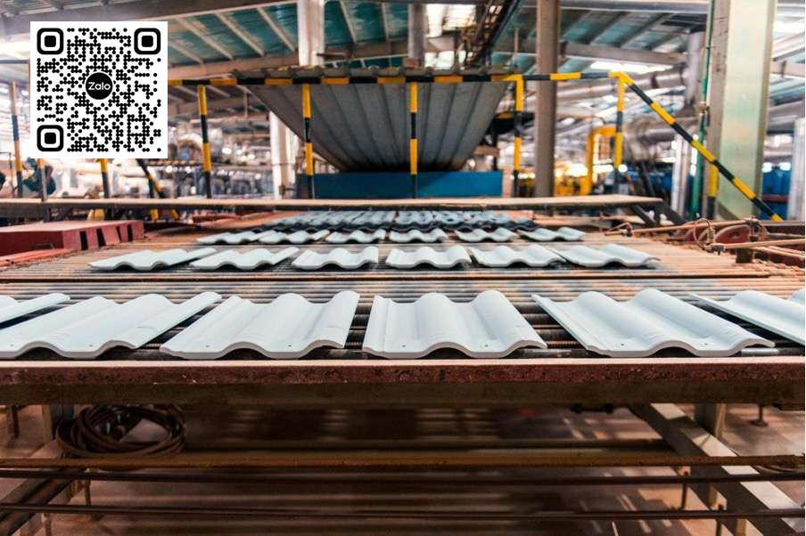- Nung ngói: Ngói được nung trong hệ thống lò nung dài 150m, điều khiển tự động và kiểm soát nhiệt độ sau mỗi 5m. Nhiệt độ nung cao nhất có thể đạt từ 1135 độ C đến 1150 độ C. Hệ thống lò nung giúp giảm thiểu tối đa mức tiêu hao năng lượng và đảm bảo ngói được nung đều.