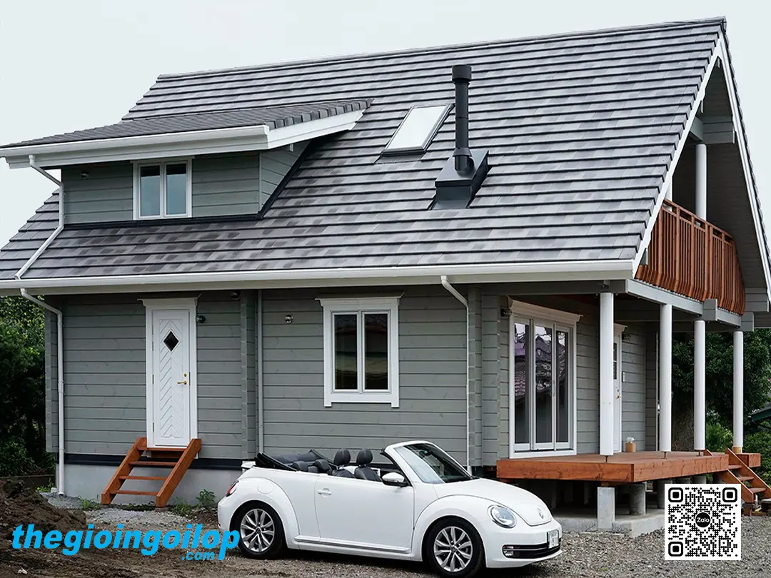 Hình ảnh thi công cho thấy sự hoàn thiện đẹp mắt và chắc chắn của ngói Eishiro PP40 Nordic Gray trên các công trình thực tế.