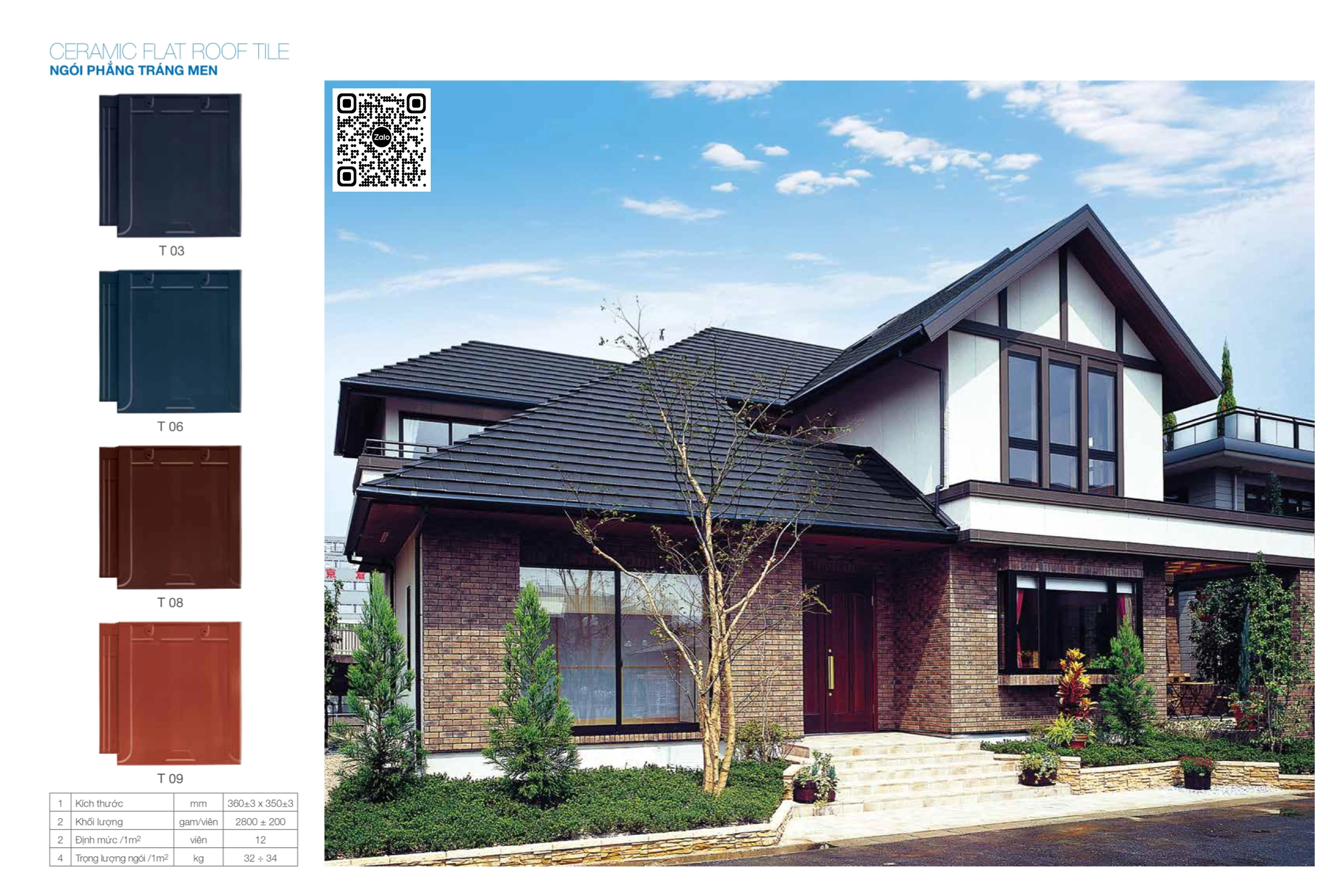 - Loại ngói: Tráng men