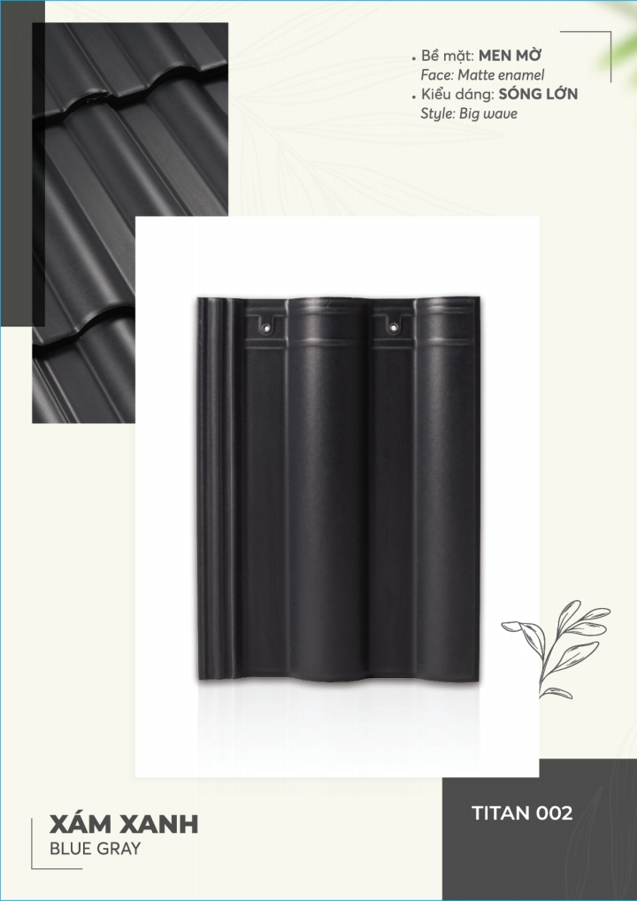 Với khung xương ceramic vững chắc và bề mặt được phủ lớp men màu, BST Ngói Tráng Men Titan mang đến cho bạn những trải nghiệm độc đáo.