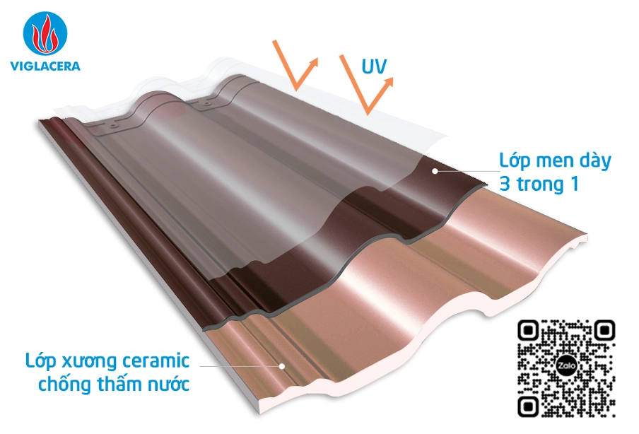 - Với khả năng chống tia cực tím, ngói Viglacera tráng men bảo vệ ngôi nhà khỏi tác hại của ánh nắng mặt trời, ngăn ngừa hiện tượng phai màu và giữ cho mái nhà luôn mới mẻ.